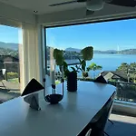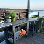Gli ospiti possono godere di una vista sulla spiaggia sul mare dalla terrazza presso la Villa Med 5 Soverom, 4 Bad Og 3 Kjokken, 400 M Fra Lokal Badestrand Bergen, situata a 7 km dalla Fortezza di Bergenhus. Dotata di un parcheggio auto privato e di Wi-Fi, questa villa fronte mare è situata nel quartiere Åsane.